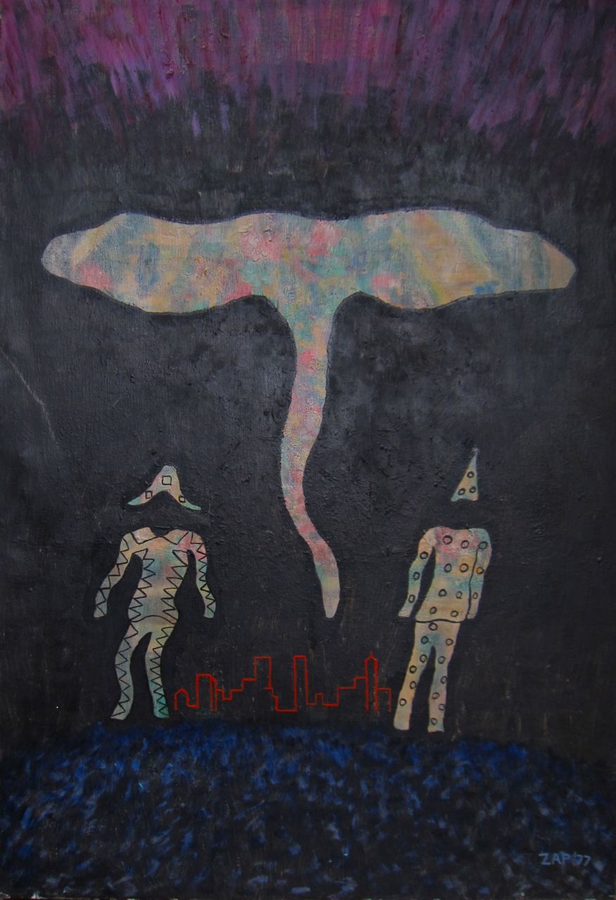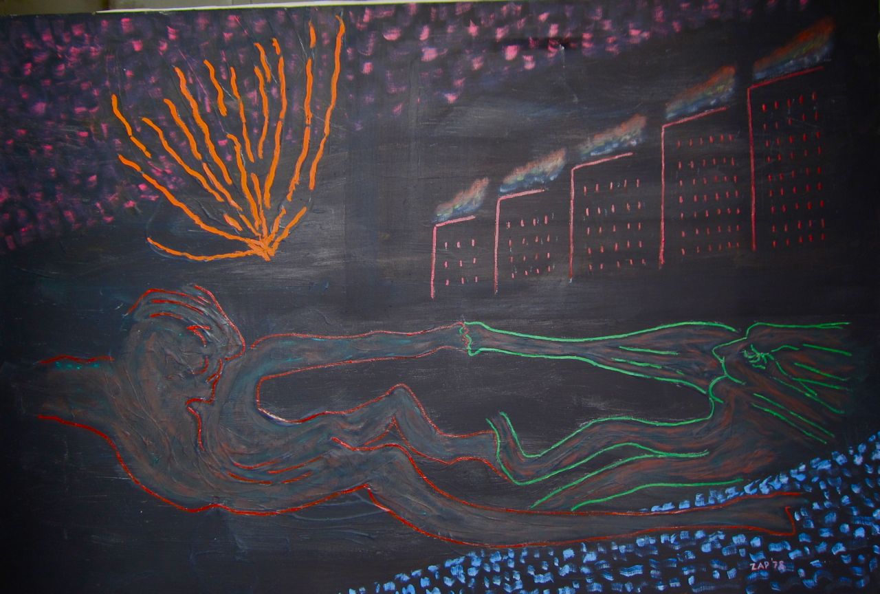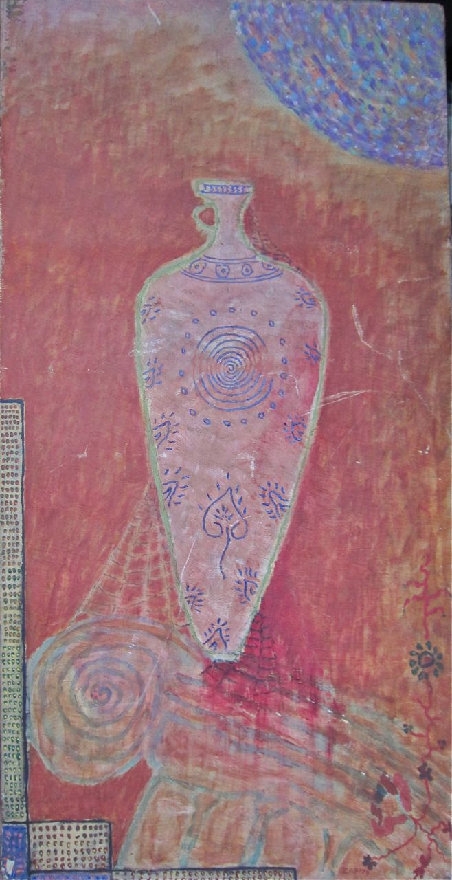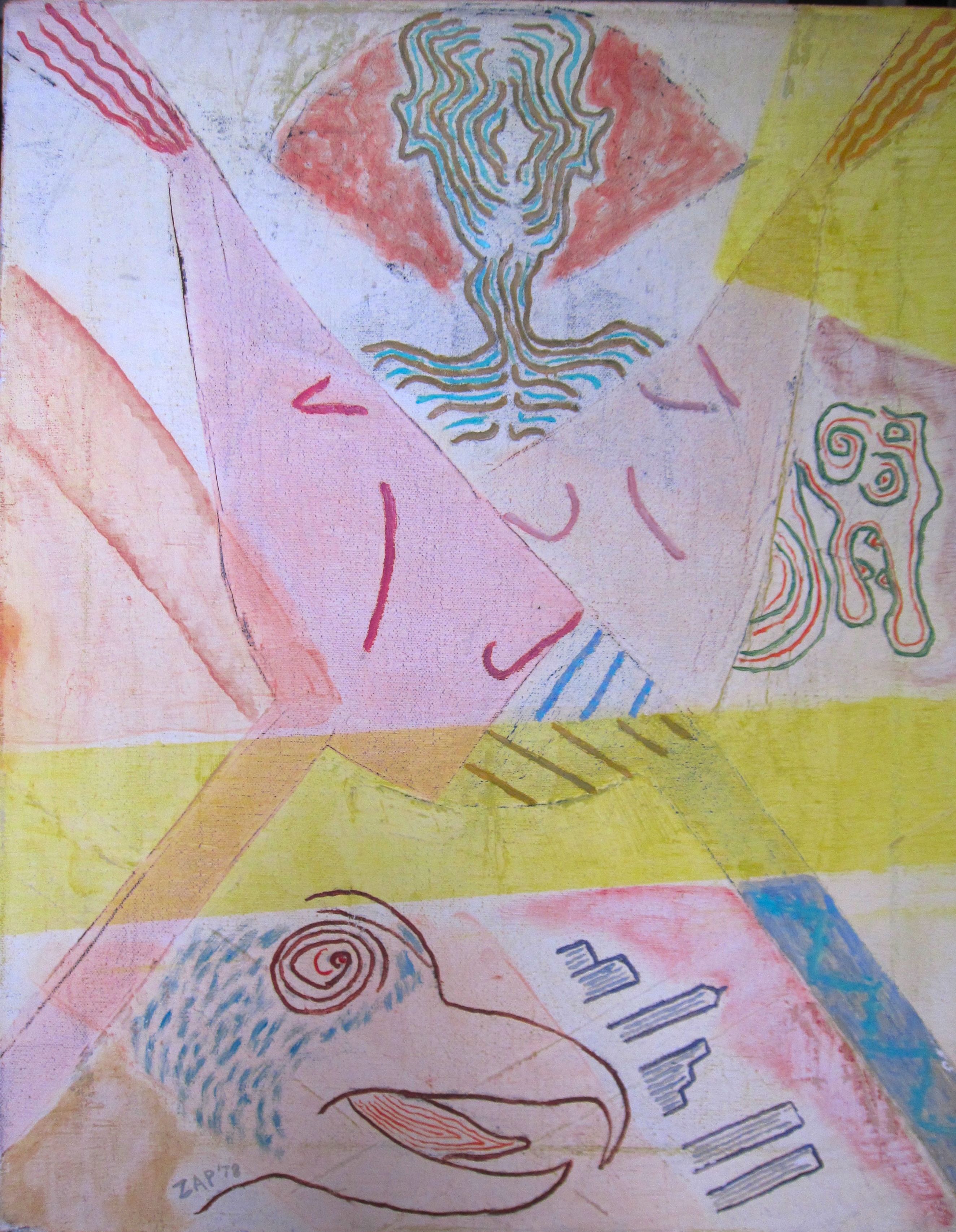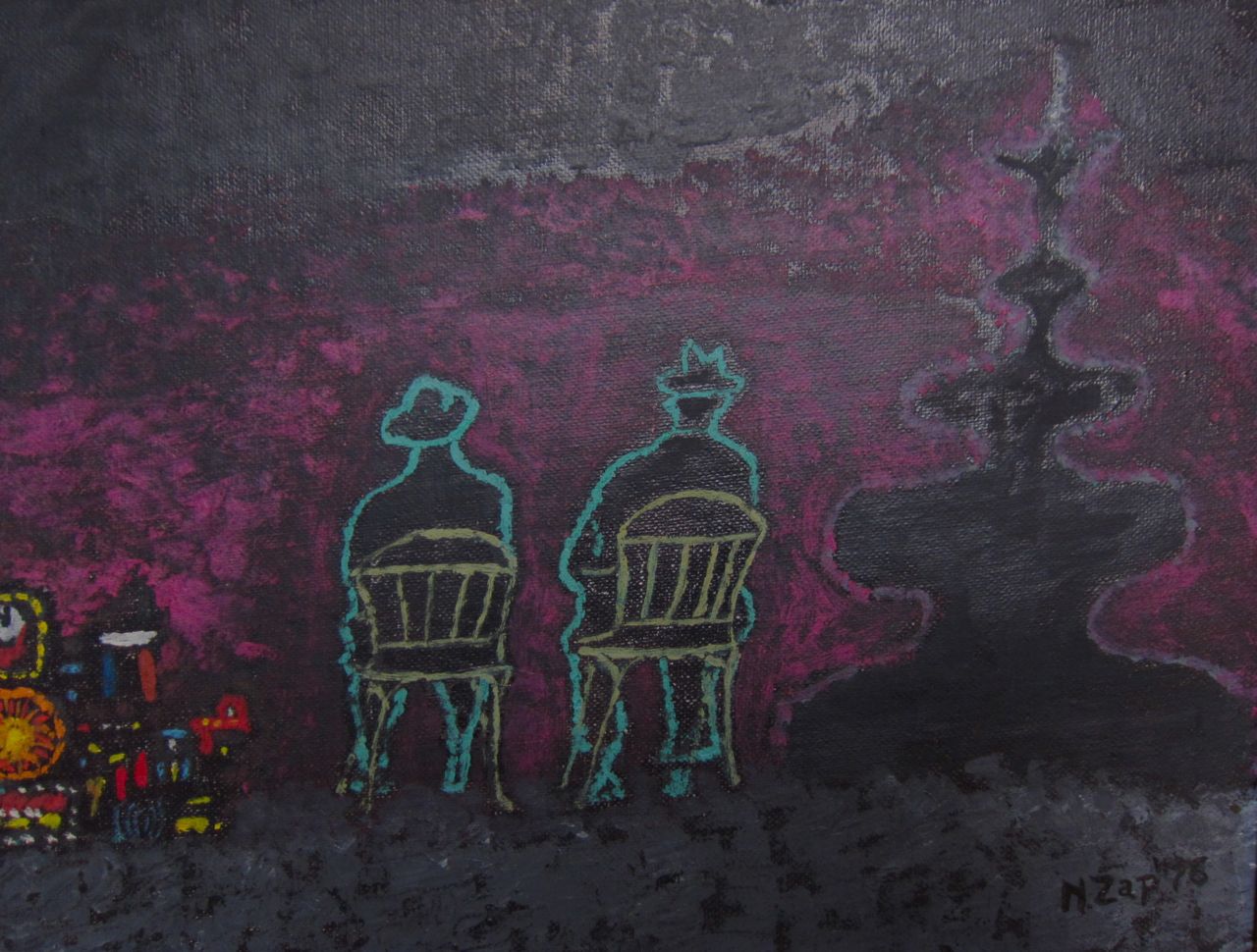 See also: In Memoriam Nathan Zap 1919-2012 (at least scroll down to the epilogue because an image—see above— appeared the morning after his funeral that might have been his last painting, sent from the other side, with some willing suspension of disbelief)