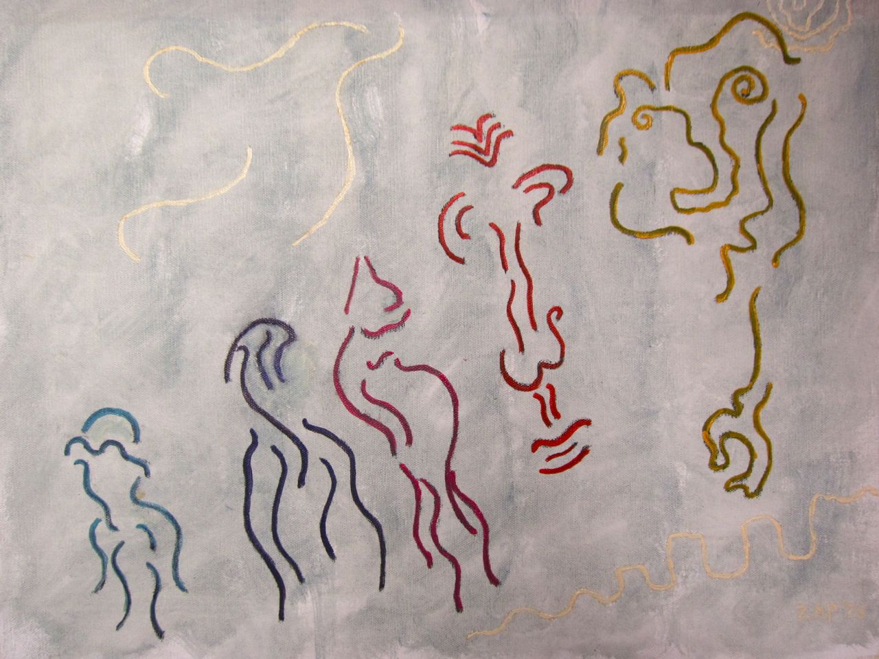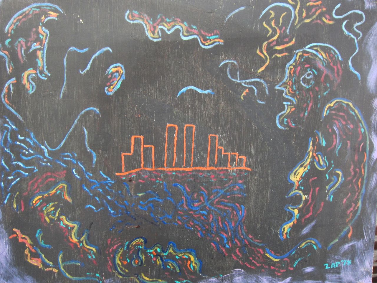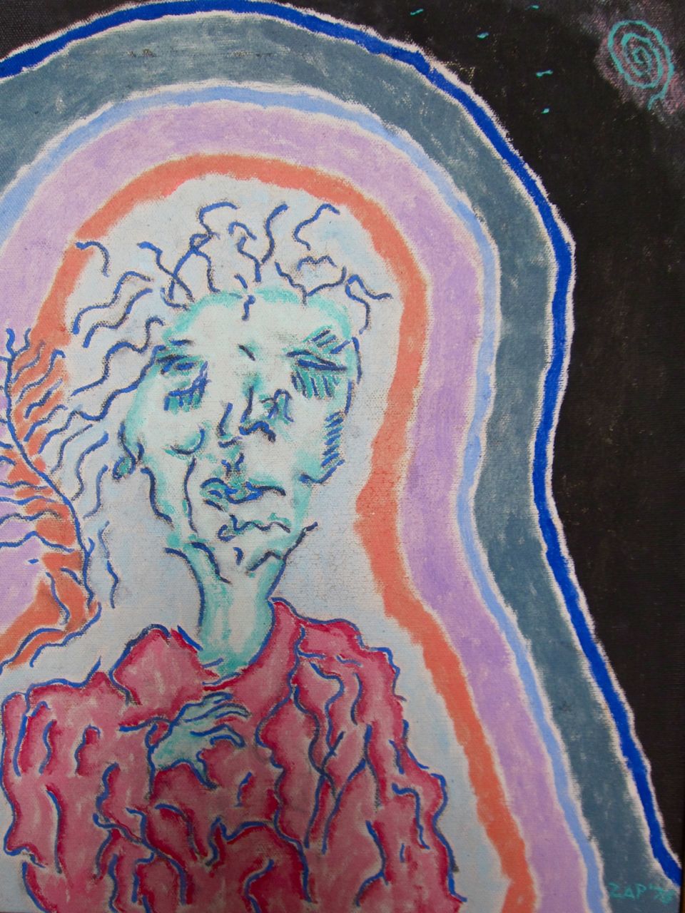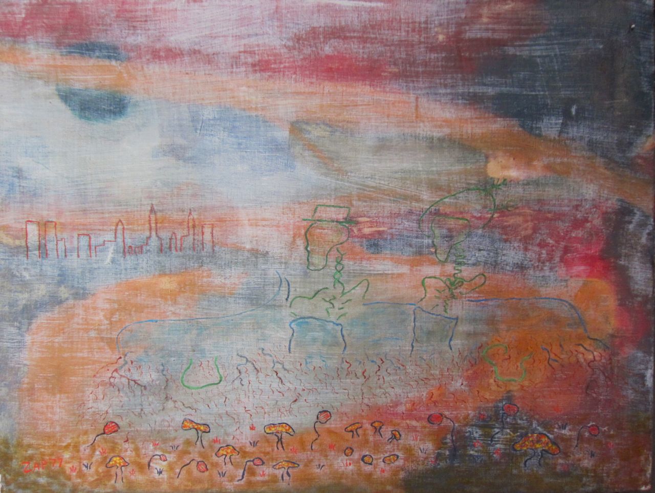 See also: In Memoriam Nathan Zap 1919-2012 (at least scroll down to the epilogue because an image—see above— appeared the morning after his funeral that might have been his last painting, sent from the other side, with some willing suspension of disbelief)