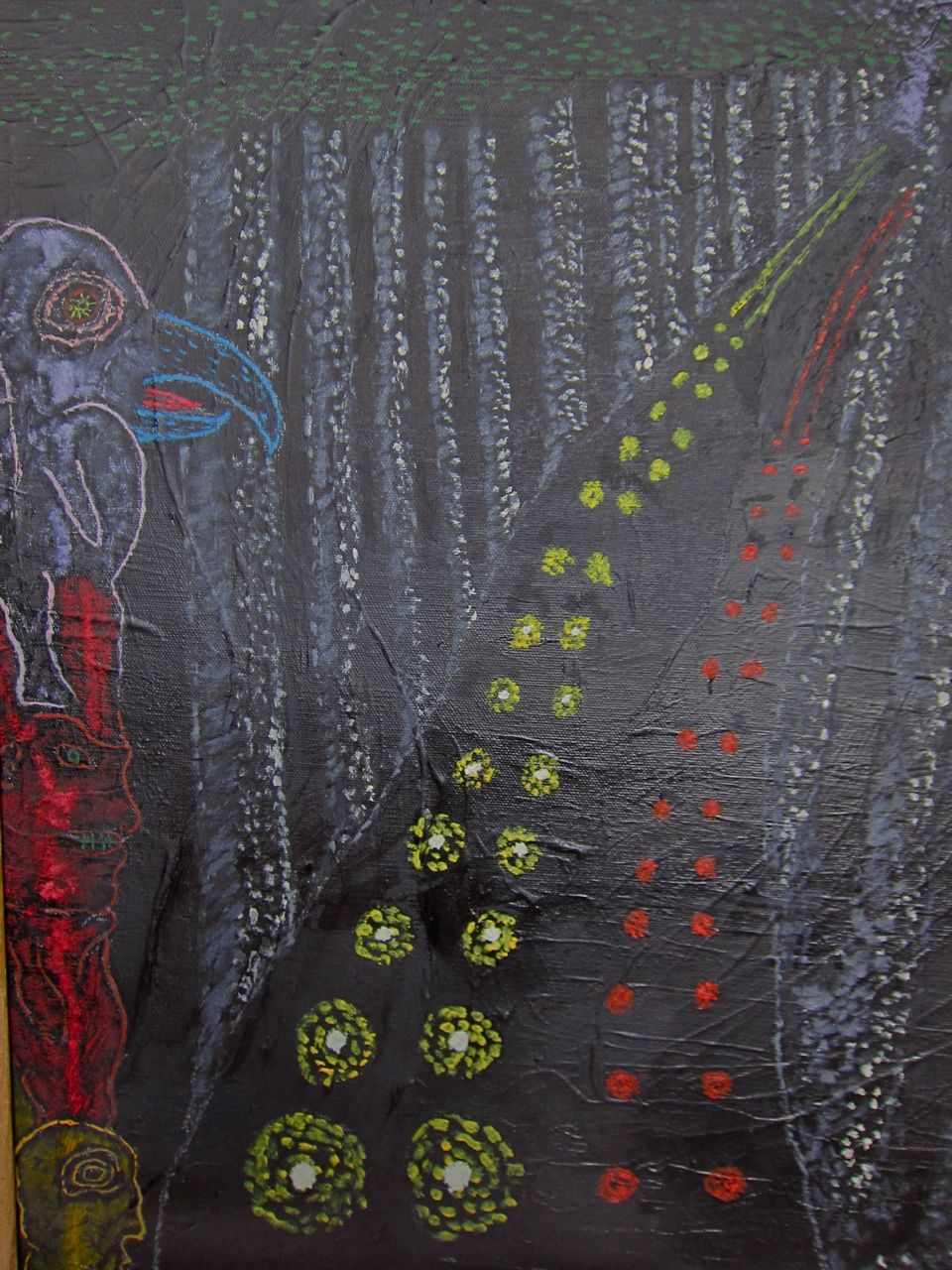 I named the collection “Nocturnal Visions” because so many of the images are nocturnal and have black backgrounds but also because they were mostly created very late at night. My dad was always a night owl and the paintings were done in the basement under florescent lights at a time when most people, even other New Yorkers, were inhabiting the dreamtime.